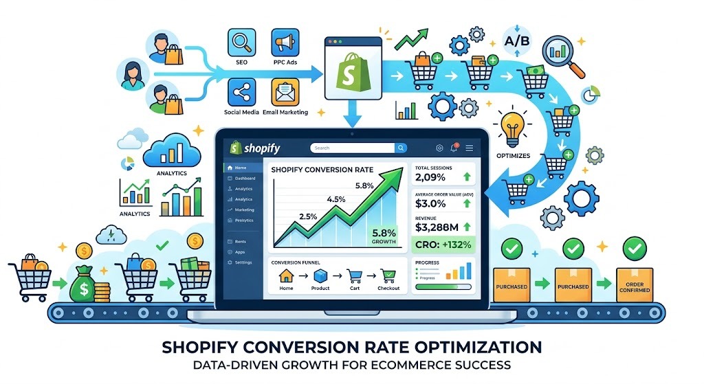 Learn Shopify conversion rate optimization strategies to turn visitors into customers. Discover proven CRO techniques, tools, and tips to increase your Shopify sales.